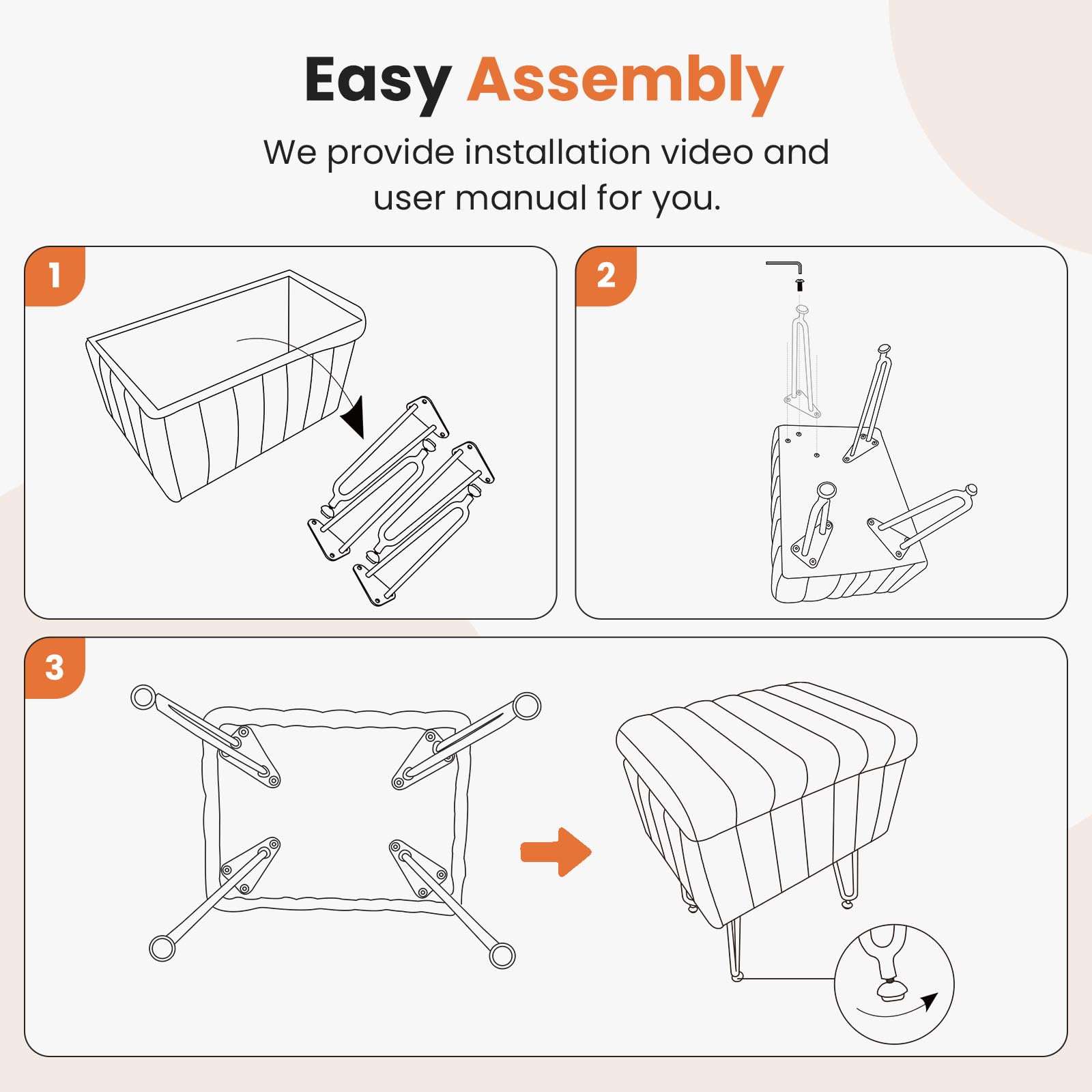 Easy Assembly: It’s very easy to assemble this storage stool makeup stool. Simply install the 4 stool legs and adjust the height of the feet to fit the floor, completing the setup in under 20 minutes!