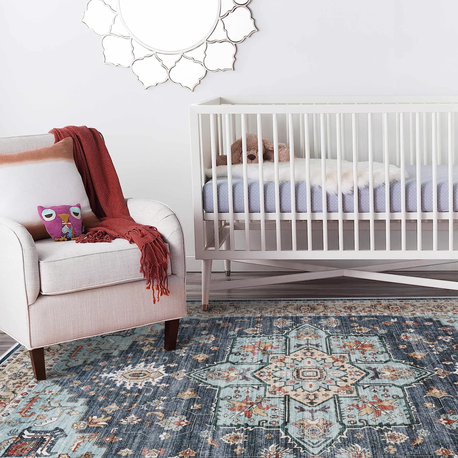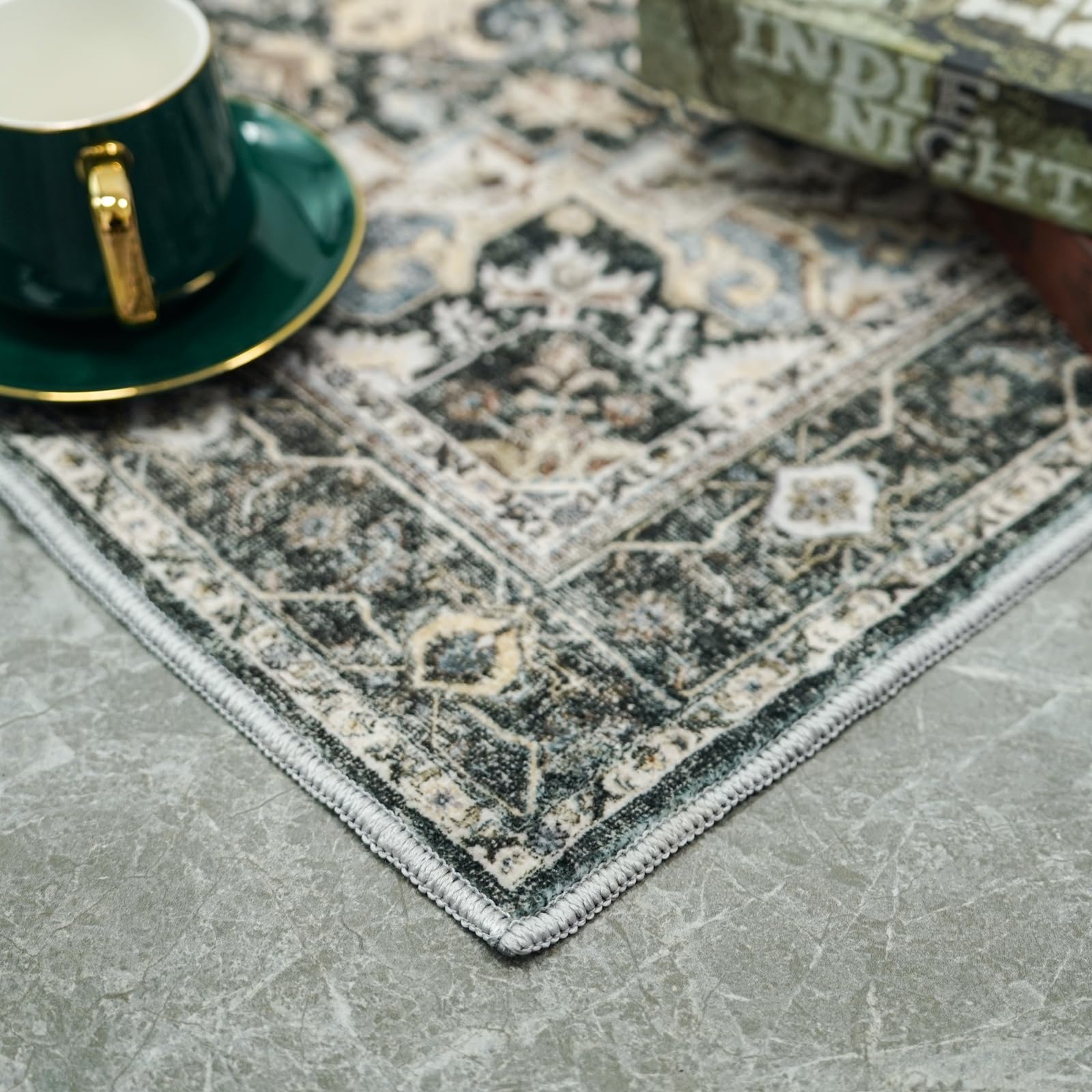 TOPRUUG Washable Oriental Area Rug - 12x15 Rugs for Living Room Soft Carpet for Bedroom Waterproof Floral Distressed Indoor Stain Resistant Non-Shedding Floor Carpets (Green, 12x15)
