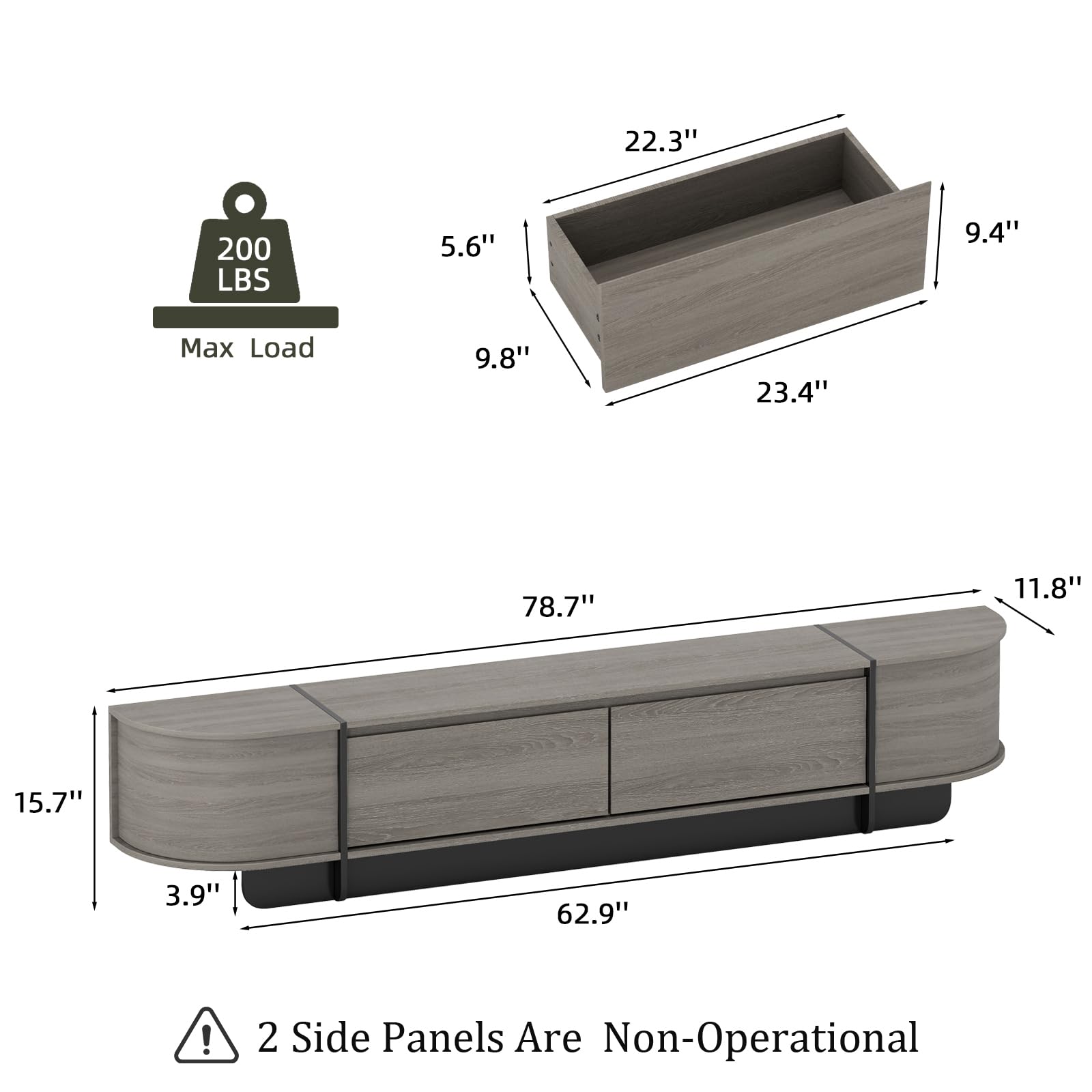 • 【Sliding Door & Curved Edge】Features a modern sliding door with rounded corners, mid century entertainment center prevents pointed bumps and 2 sliding doorswith glide mechanism and elegantly rounded edges—combining effortless functionality with a chic, space-saving design that complements any decor.