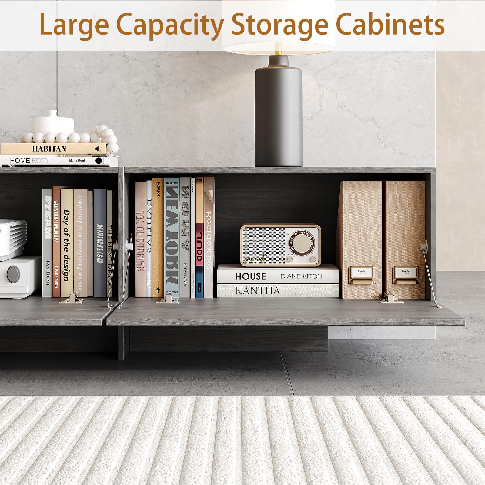 • 【Spacious & Fit for Large TVs】Designed for big screens, tambour TV stand: 86.61" L × 15.75" W × 18" H, comfortably accommodating TVs from 65" to 85". Its expansive surface provides ample space for your entertainment setup, ensure stability without overwhelming your space, while enhancing your living room’s aesthetic.