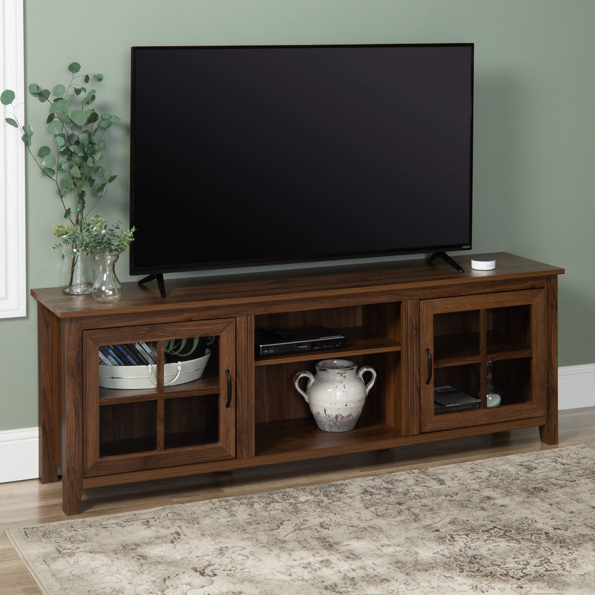 Walker Edison Portsmouth Classic 2 Glass Door TV Stand for TVs up to 80 Inches, 70 Inch, Dark Walnut