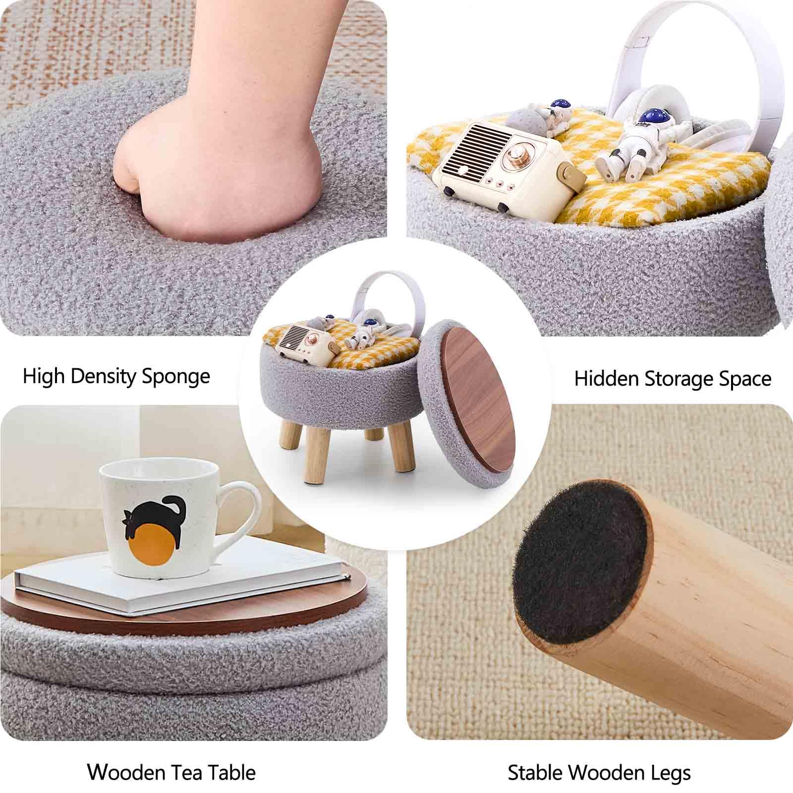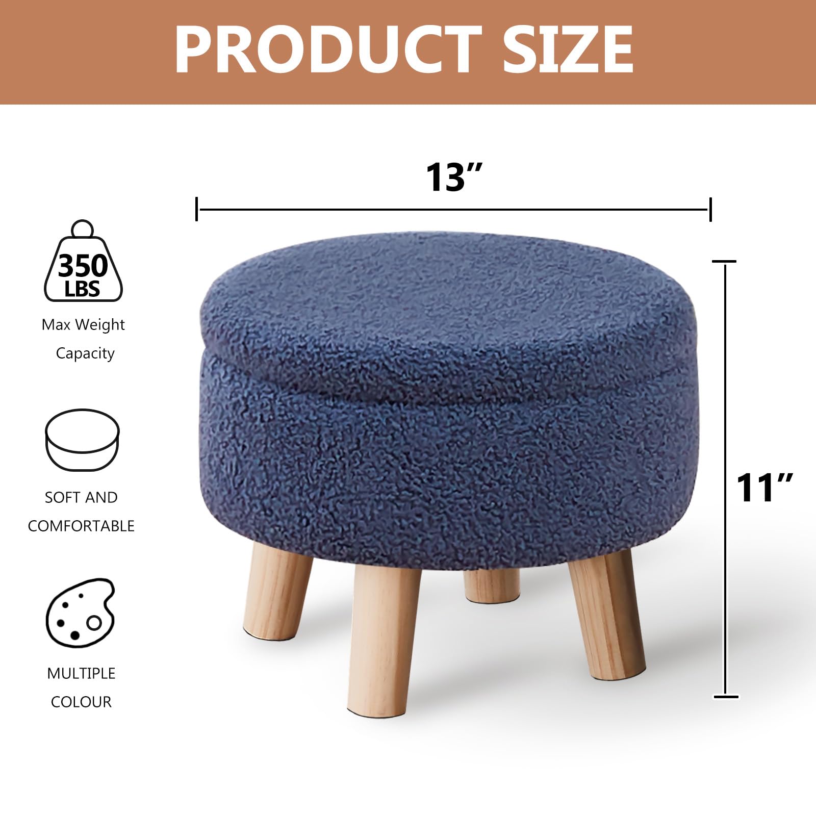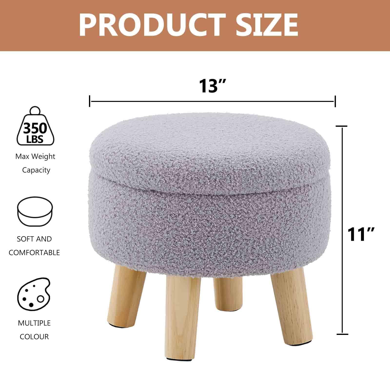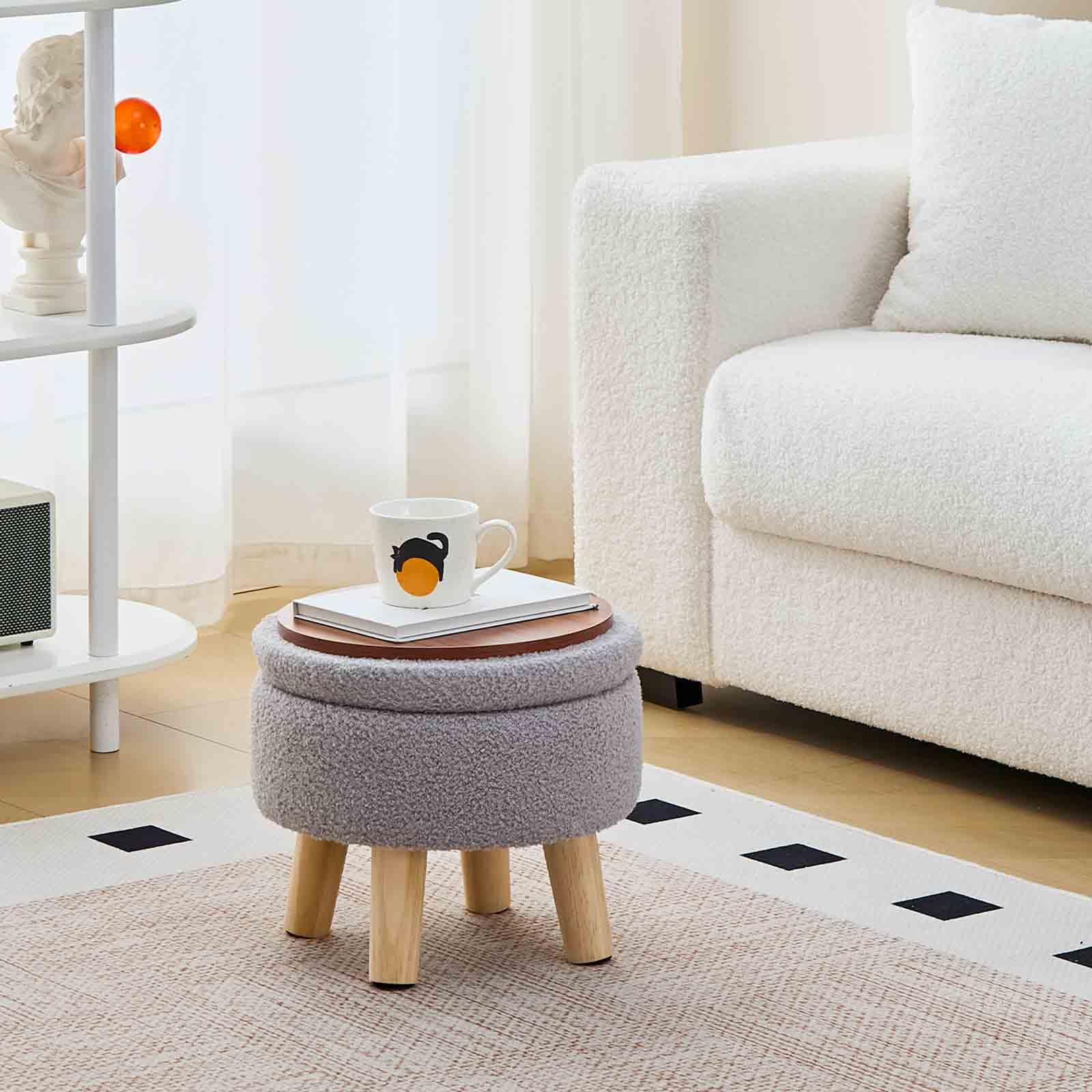 Wimarsbon Storage Ottoman, Modern Round Footrest with Soft Padded Seat, Teddy Velvet Footstool with Wood Legs, Accent Small Table or Plant Stand for Hallway, Living Room (Cream)