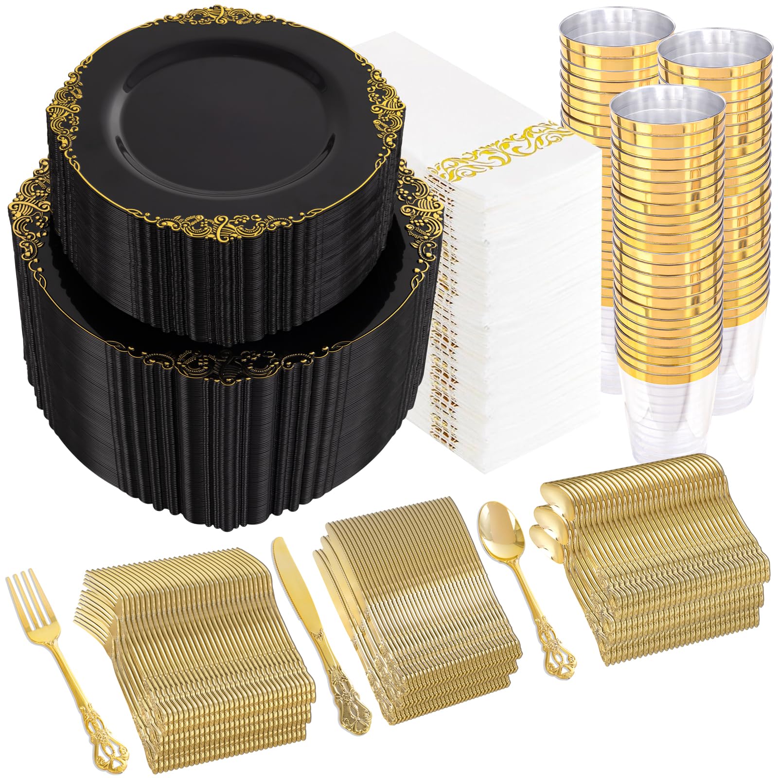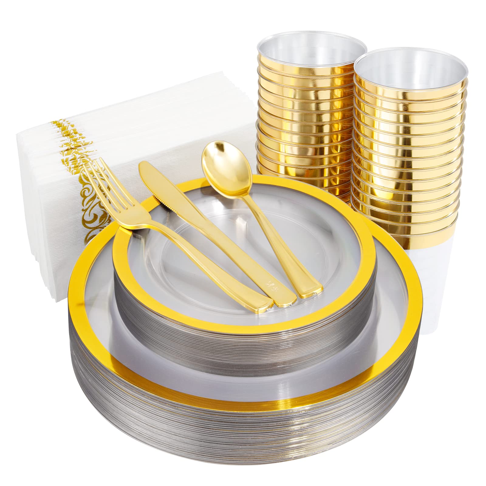 • 100 Person Set: You will receive 100 10.25-inch silver dinner plates, 100 7.5-inch silver dessert plates, 100 silver edged plastic cups, as well as 100 Silver tableware and 100 napkins,the silver plastic dinnerware set is fully matched and can be used by 100 people, making it the perfect choice for hosting large gatherings.