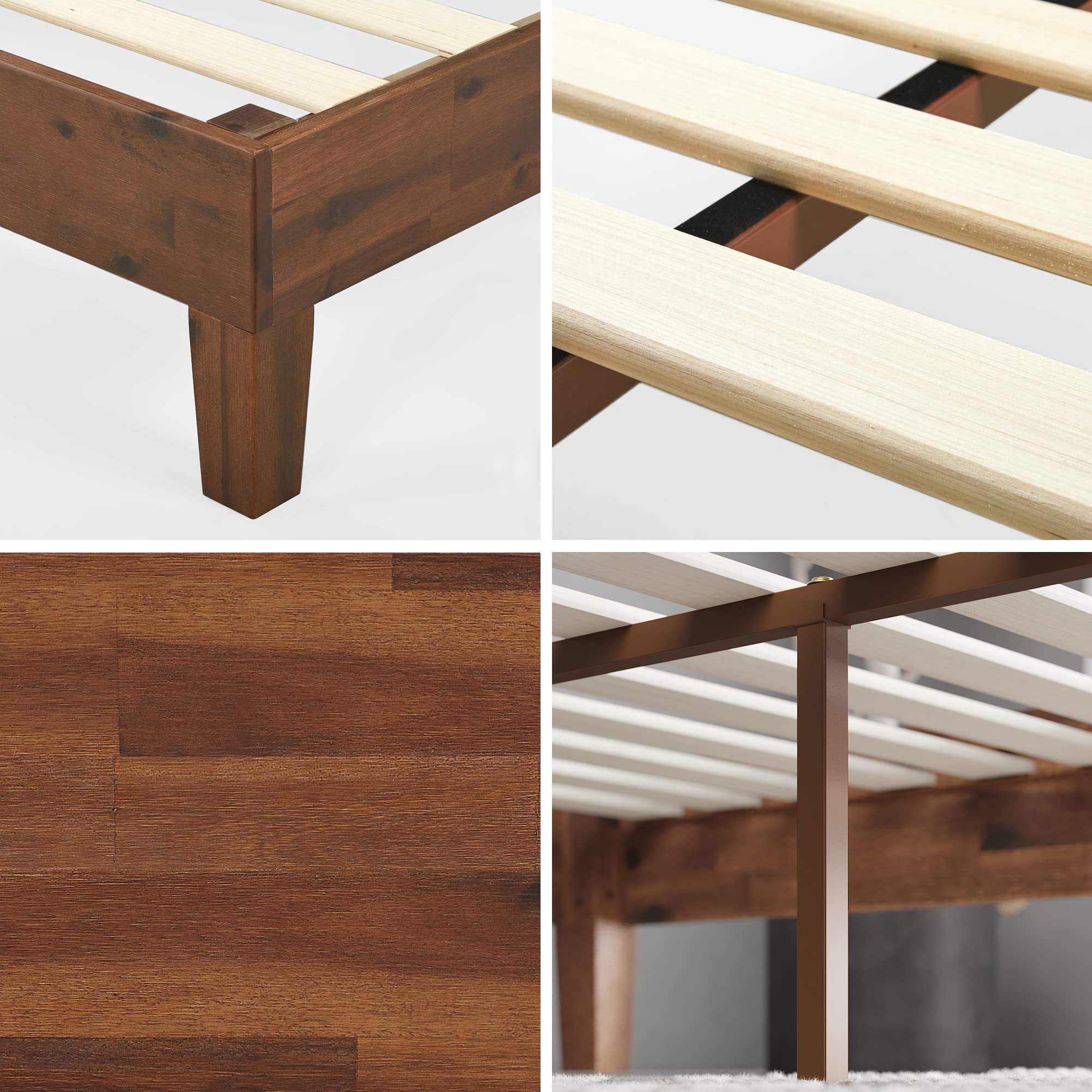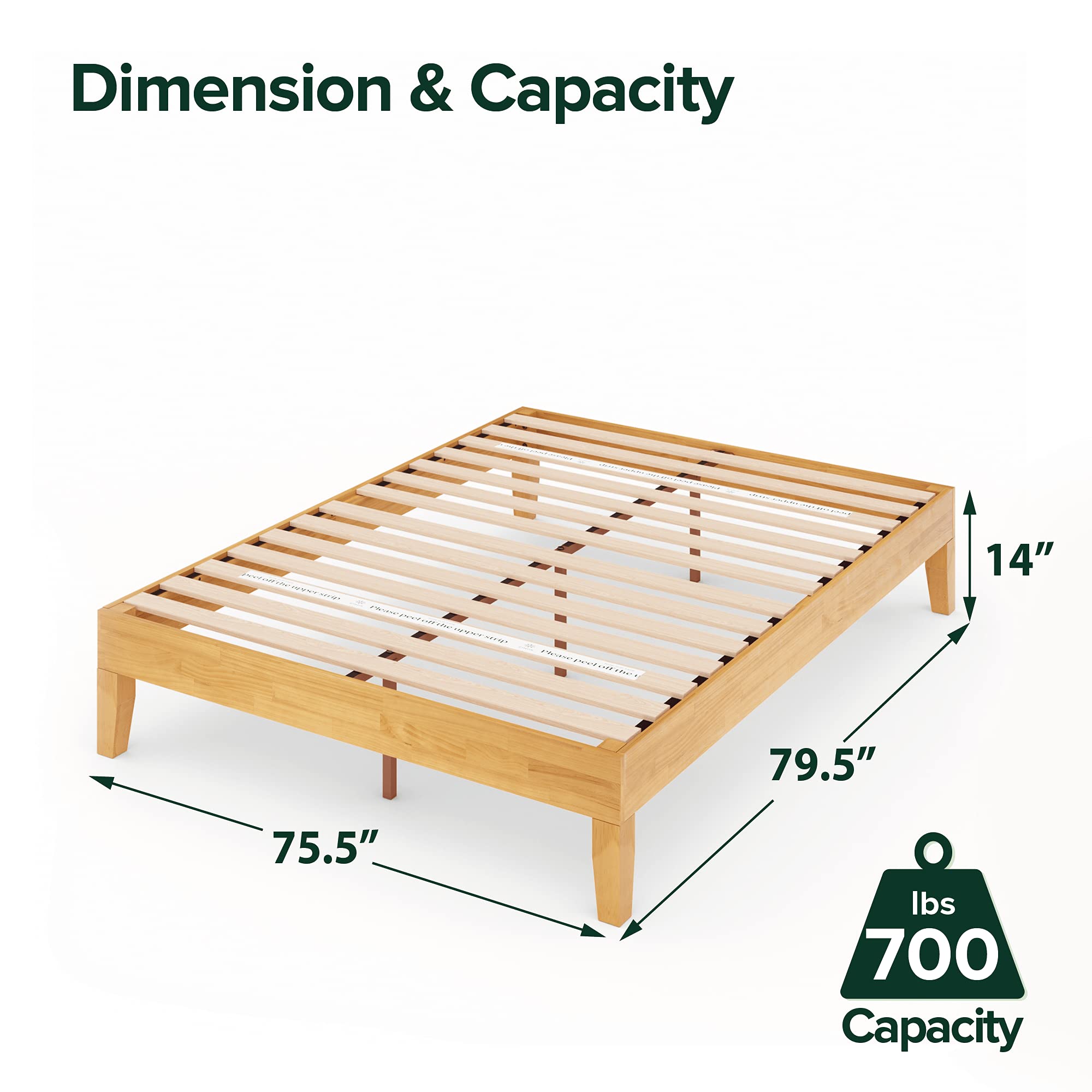 DURABLE DESIGN - A thick and sturdy solid wood frame is constructed with steel interior framework for longevity; twin size supports a maximum weight capacity of 350 lbs, while all other sizes can support up to 700 lbs